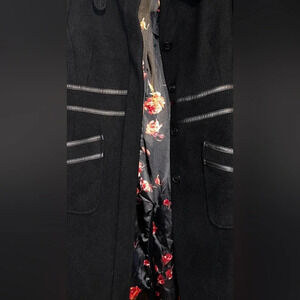 Beautiful Black Wool Trench coat with leather lining and beautiful floral inside lining