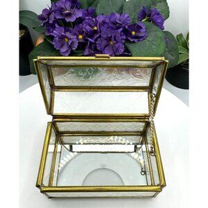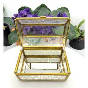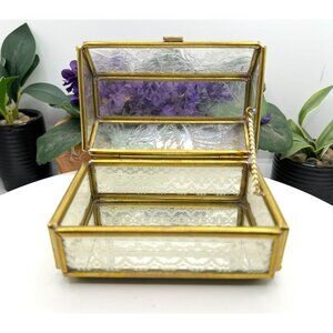 Vintage Via Vermont Handcrafted Glass & Brass Jewelry Box With Lace Detail