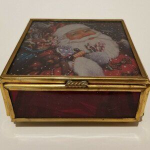 Vintage Via Vermont Santa Christmas Trinket, Jewelry Box 1994