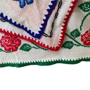 Vintage Vibrant Floral Cross Stitch Linen Trio Decor