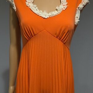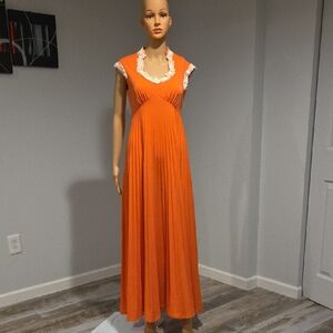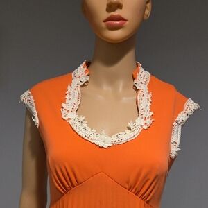 Vintage Vibrant Orange Maxi Dress with Lace Trim