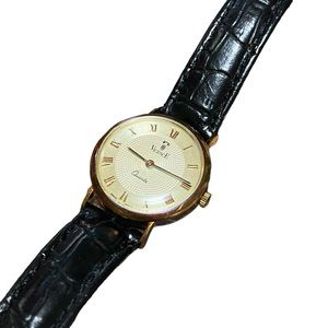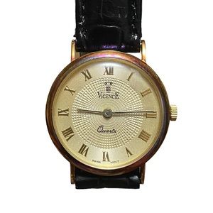 Vintage VicencE 14 Kt Gold Watch with a beautiful dial and a classic black embossed leather strap.