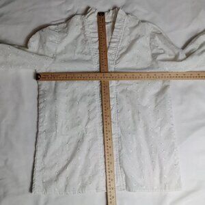 Ruffled button down top with elastic cuffs. Fits like a medium.