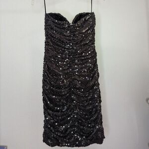 Vintage Vicky Tiel Couture Paris ruched sequin strapless bustier mini dress XS