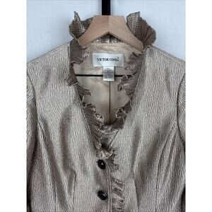 Vintage Victor Costa Jacket Women's 4 Gold Metallic Ruffle Trim 90s Maximalist