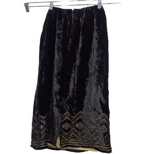 Vintage Victor Costa Occasion Black Velvet Skirt with Gold Lining that shows through the burnout Zigzag Pattern Hem