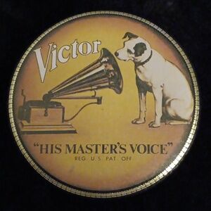 Vintage Victor His Master's Voice round 5-inch tin canister
