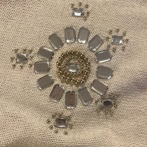 Vintage Victoria Harbour Beaded Cowl Neck Sweater Sz Medium Cream Emblishment
