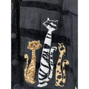 This vintage Victoria Harbour cardigan sweater is a must-have for any cat lover. The black color and cat theme make it a unique addition to any wardrobe. Has long sleeves and button accents size small.