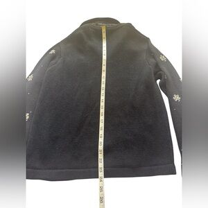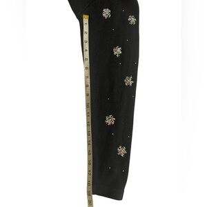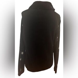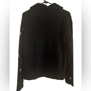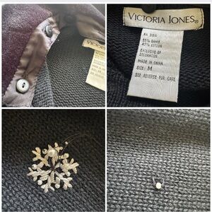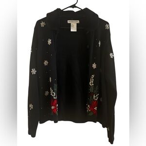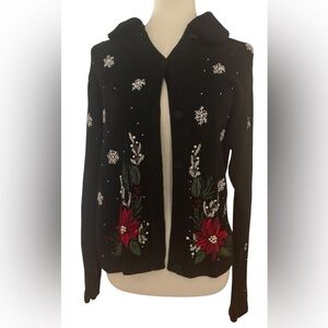 Vintage Victoria Jones Black Faux Fur Removable Collar Christmas Poinsettia Cardigan Size Medium