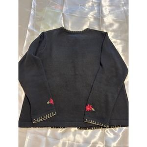 Vintage Victoria Jones Christmas Cardigan Sweater Size Medium. Y2K. Pear Trees embroidered and embellished with beading.