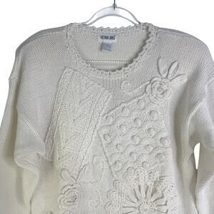 Vintage Victoria Jones Grandmacore Boho Knit Sweater Embroidered Whimsy Crochet Feminine Dainty Med M