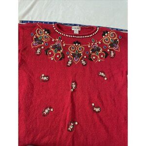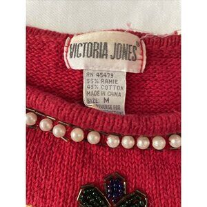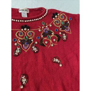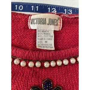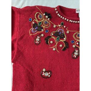 Vintage Victoria Jones Red Beaded Sweater Medium