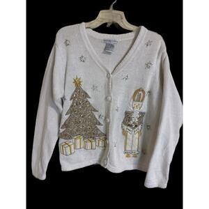 Vintage Victoria Jones White Ugly Christmas Sweater Nutcracker Design Size M