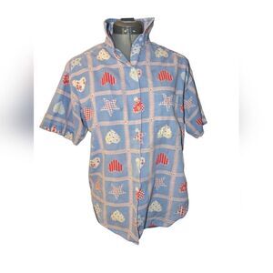 Vintage Victoria Jones Petites blue patchwork heart print shirt