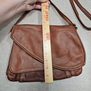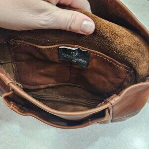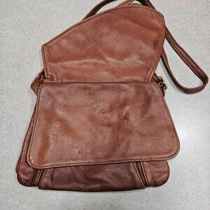 Vintage Victoria Leather Brown Crossbody Tulip Bag Multiple Storage Pockets