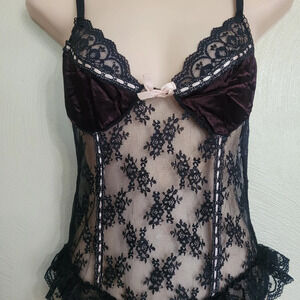Vintage Victoria Secret Black and Pink Lace Mesh Teddy Size Women's Medium