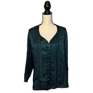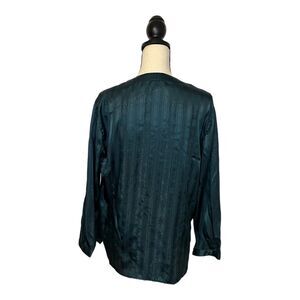 Vintage Victoria Secret Gold Label Pajama Top Small Dark Green Striped Satin