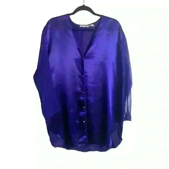 Vintage Victoria Secret M/L Nightgown Purple Pearl Button Down Sheer Sleeves