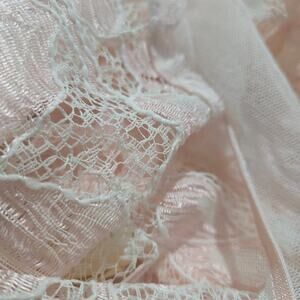 Step back in time with this exquisite vintage Victoria's Secret Crown Label nightgown. This piece features a delicate sheer mesh bodice adorned with intricate lace detailing in pink and white, creating a stunning and alluring V-neckline. The lower portion of the nightgown flows gracefully in a soft, solid light pink fabric, reaching an elegant midi length.