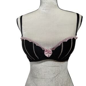 Vintage Victoria Secret Sz 36B Sexy Little Things Black Pink Bow Balconette Bra