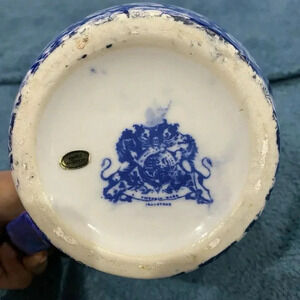 Vintage Victoria Ware Ironstone Pitcher Calico Blue White Floral Flow Blue 6in