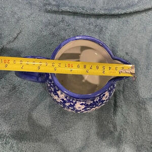 This vintage Victoria Ware ironstone pitcher is a beautiful addition to any collection. With a calico blue and white floral pattern, this pitcher stands at 5 inches tall and measures 6 inches in length and 8 inches in width. The set includes one pitcher, and it is made from high-quality ironstone material.