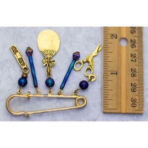 Vintage Victorian Charm Gold Tone Blue Bohemian Unique Clip - CH1