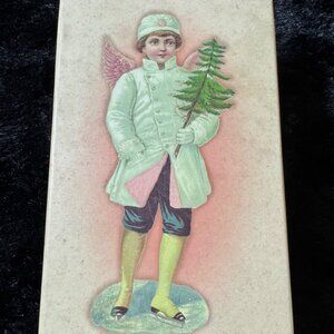 This charming vintage Christmas angel boy figurine is crafted with intricate details, making it a delightful addition to holiday decorations.