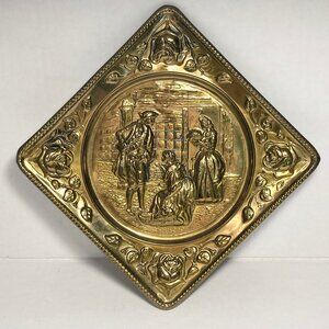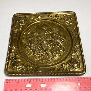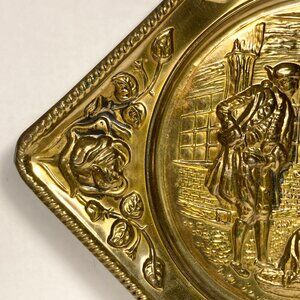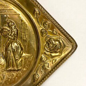 Vintage Victorian Couple Scene Brass Wall Hanging Art Plaque Elpec England Roses