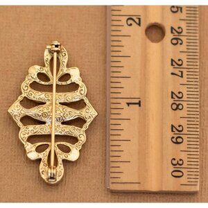 Vintage Victorian Faux Diamond Rhinestones Gold Tone Symbolic Brooch - Y2