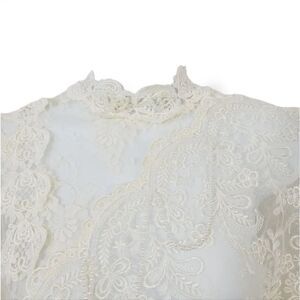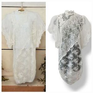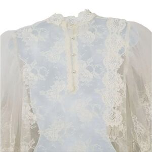 Vintage Victorian Flutter Puff Sleeve Sheer Ivory Lace Formal Wedding Dress M/L