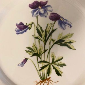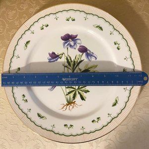 The beautiful plate is adorned with purple flowers in the center of the plate, leave design border and completed with gold color trim.