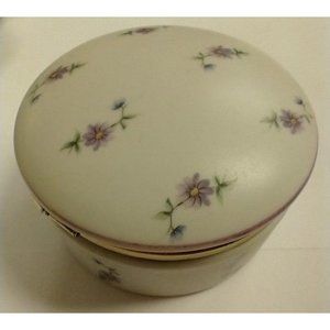 Listing is for a porcelain jewelry trinket sundries box or keeper from the Victorian Gardens collection by Hummelwerks. This is entitled Violets. This pattern is hard to find.