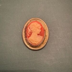 Vintage Victorian Gold Tone Pink & White Cameo Brooch