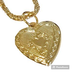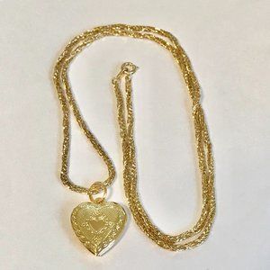 Vintage Victorian Heart Locket Necklace Gold Plated 24" Chain Photo Picture
