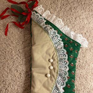 Lace high heel pearls floral Christmas stocking 17.5 inches long