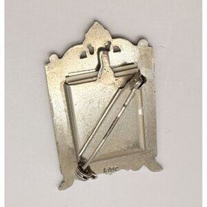 Vintage Victorian Inspired Portrait Silver Tone Brooch Pin Enamel Accents LMC