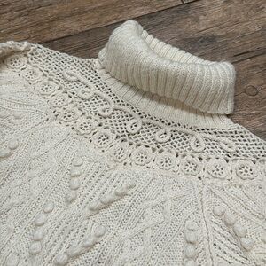 Vintage Victorian Knit Wool-blend Popcorn turtleneck Sweater Floral Detail large. Excellent condition