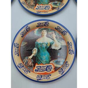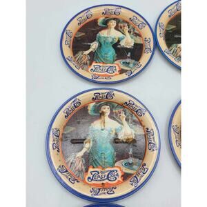 Vintage Victorian Lady Pepsi Cola Tin Coasters Set Of 9 Round 3 1/2 inch