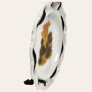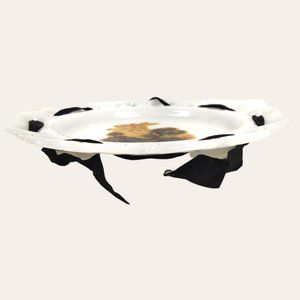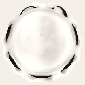 Vintage Victorian Lattice Edge Milk Glass Plate Black Poodles & Hanging Ribbon