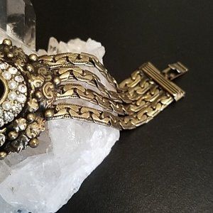 Vintage Victorian Revival Rhinestone Medallion Bracelet