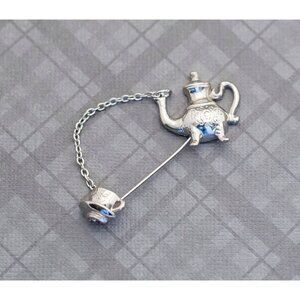 Vintage Victorian Silver Tone Tea Kettle Stick Pin by Avon G12