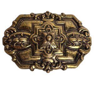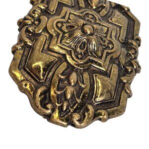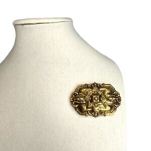 Vintage Victorian Style Brass Statement Floral Pin Brooch 3"