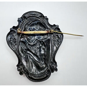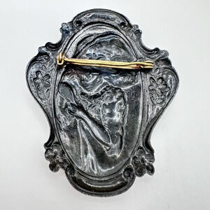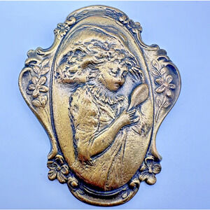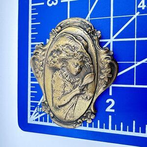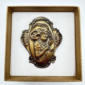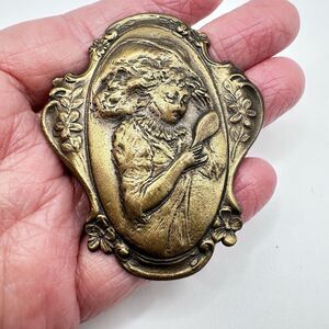 Vintage Victorian Style Bronze Gilt Young Girl Art Nouveau Brooch, 2.75" tall