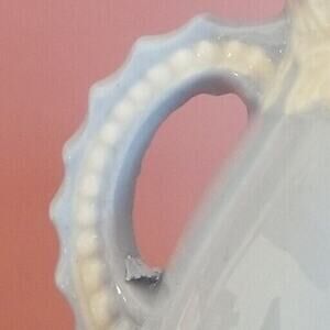 Vintage Victorian Style Ceramic Vase Made In Japan, In White And Blue, 1950s