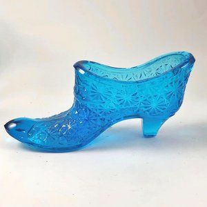 Vintage Victorian Style Fenton Daisy and Button Blue Glass Shoe