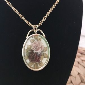 Vintage Victorian Style Rose Pendant Necklace