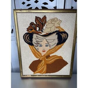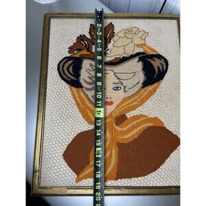 Vintage Victorian Woman Needlepoint Wall Art Large Handmade Decor 80s