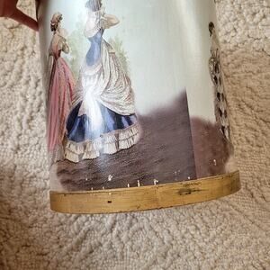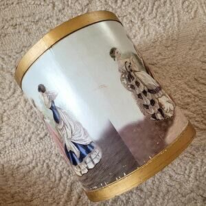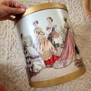 Add a touch of vintage charm to your home or office with this lovely Victorian-style waste paper basket! This wooden trash can features a beautifully detailed image of a Victorian woman, bringing a touch of elegance to any room. It is in good used condition, with some minor wear to the design. Perfect for collectors, vintage enthusiasts, or anyone who appreciates unique home decor. Don't miss out on this charming and functional piece!